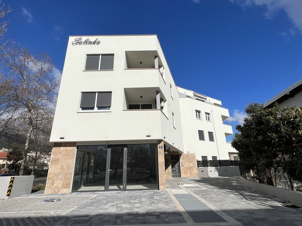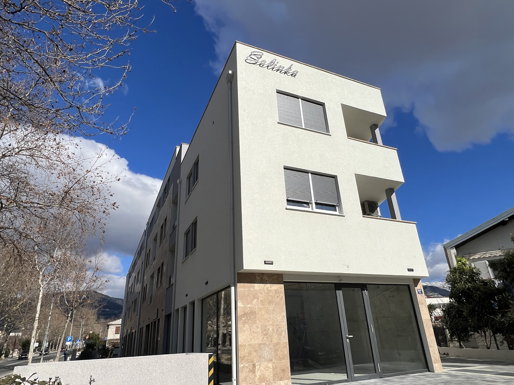 Stambeno poslovna zgrada. Izgrađena 2025 godine u Solinu. Zgrada se proteže na 4 etaže (podrum, prizemlje te dva kata). U objektu je izgrađeno 15 visokokvalitetnih stanova te 2 poslovna prostora sa 21 unutarnja garažna te 4 vanjska parkirna mjesta...