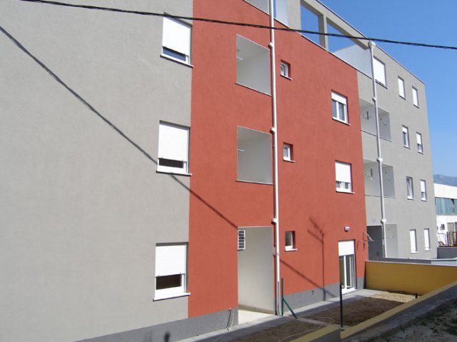 Stambeno poslovna zgrada. Izgrađena 2025 godine u Solinu. Zgrada se proteže na 4 etaže (podrum, prizemlje te dva kata). U objektu je izgrađeno 15 visokokvalitetnih stanova te 2 poslovna prostora sa 21 unutarnja garažna te 4 vanjska parkirna mjesta...